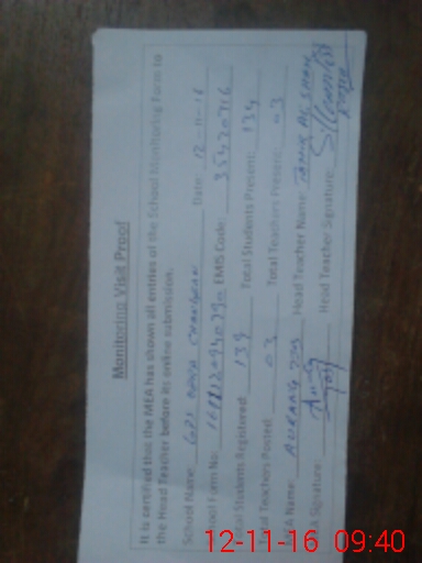 | Attendance Register | Head Teacher | MEA with School | Visit Proof |
