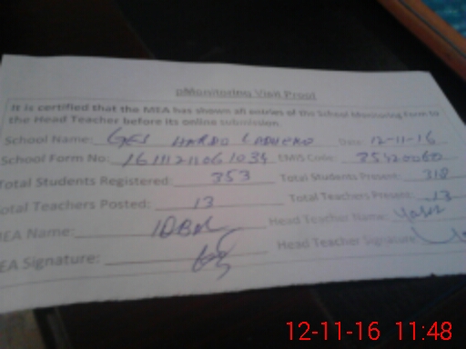 | Attendance Register | Head Teacher | MEA with School | Visit Proof |