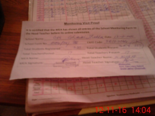 | Attendance Register | Head Teacher | MEA with School | Visit Proof |