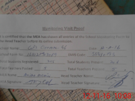 | EMIS Code: 35410193 | Name of School: GPS CHAK NO 46 | |||