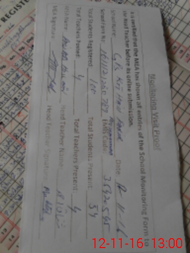 | Attendance Register | Head Teacher | MEA with School | Visit Proof |