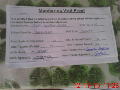| Attendance Register | Head Teacher | MEA with School | Visit Proof |