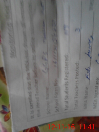 | Attendance Register | Head Teacher | MEA with School | Visit Proof |