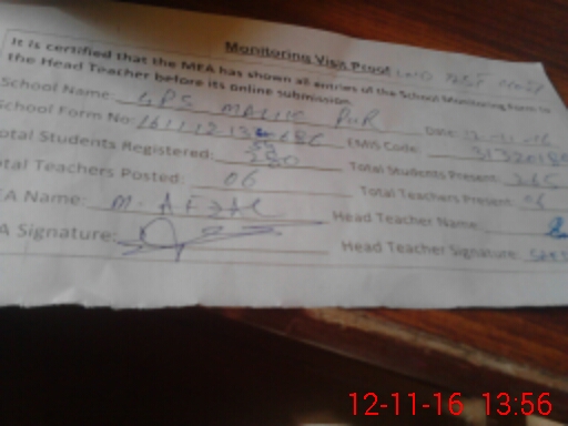 | EMIS Code: 31320189 | Name of School: GPS MALIK PUR | |||