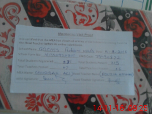 | EMIS Code: 35430872 | Name of School: GGCMS PADIAN WALA | |||