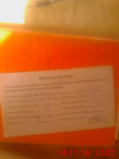| Attendance Register | Head Teacher | MEA with School | Visit Proof |