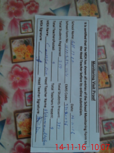 | Certified that this School was Inspected by the Undersigned MEA/DMO Today and the Information Stated Above is as Per Record. | |||||
