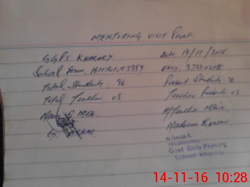 | School Visited by School Health & Nutrition Supervisor (No. of Visits) | Name1: | Rooma Naz | Name2: | ||