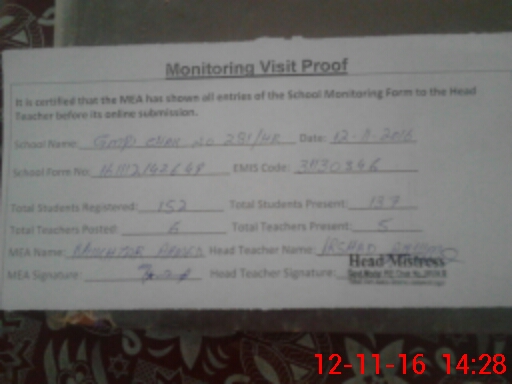| Attendance Register | Head Teacher | MEA with School | Visit Proof |