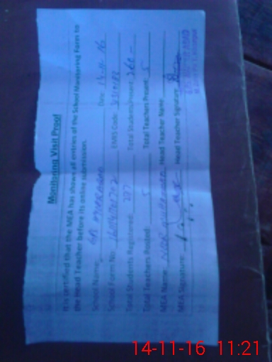 | Attendance Register | Head Teacher | MEA with School | Visit Proof |