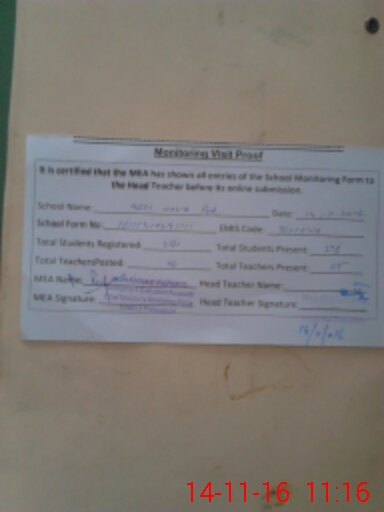 | Attendance Register | Head Teacher | MEA with School | Visit Proof |