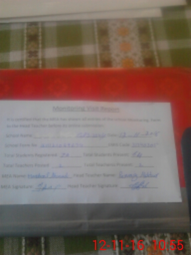 | Attendance Register | Head Teacher | MEA with School | Visit Proof |
