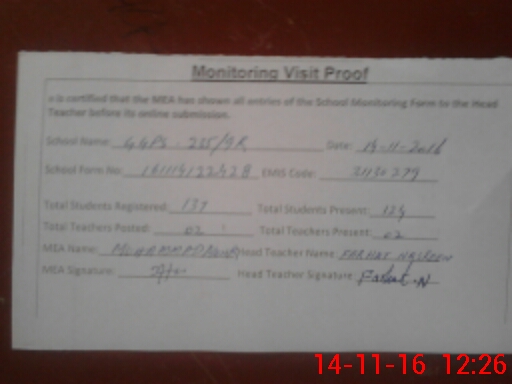 | Certified that this School was Inspected by the Undersigned MEA/DMO Today and the Information Stated Above is as Per Record. | |||||