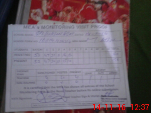 | Attendance Register | Head Teacher | MEA with School | Visit Proof |