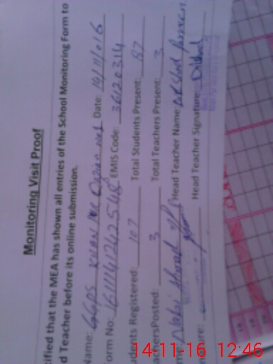 | Attendance Register | Head Teacher | MEA with School | Visit Proof |