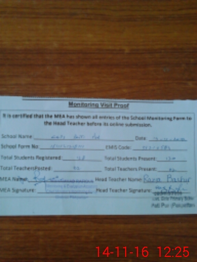 | Certified that this School was Inspected by the Undersigned MEA/DMO Today and the Information Stated Above is as Per Record. | |||||