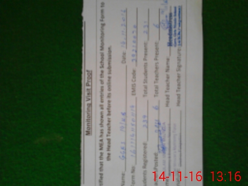| Attendance Register | Head Teacher | MEA with School | Visit Proof |
