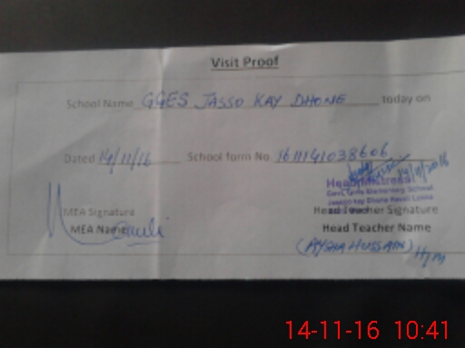 | Attendance Register | Head Teacher | MEA with School | Visit Proof |