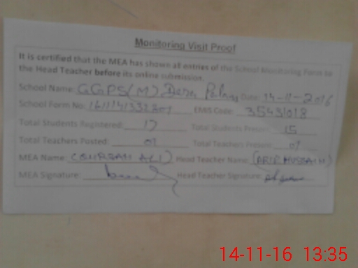 | Certified that this School was Inspected by the Undersigned MEA/DMO Today and the Information Stated Above is as Per Record. | |||||
