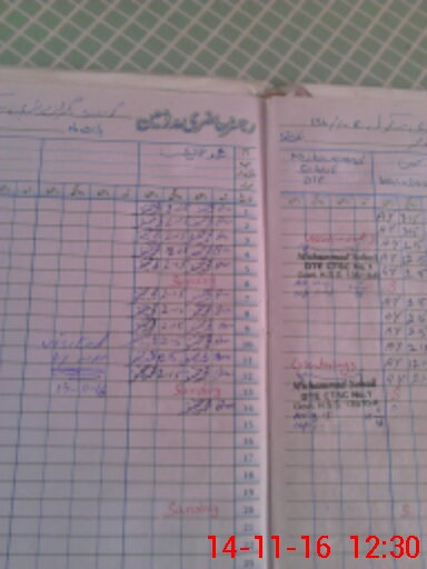 | CNIC | Full Name | Designation | R/C | Absence During Last Calender Month |