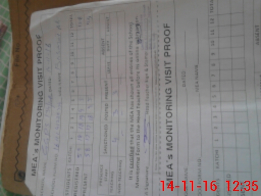 | Attendance Register | Head Teacher | MEA with School | Visit Proof |