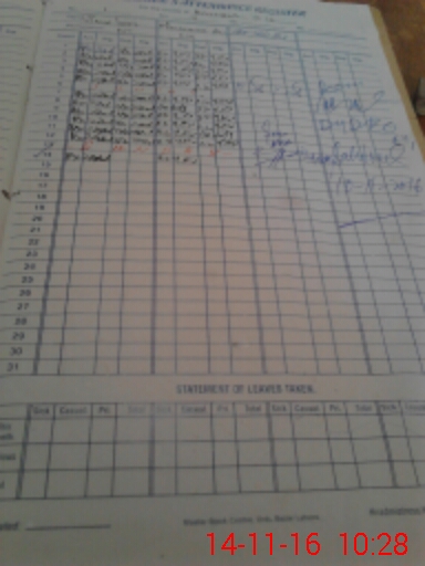 | CNIC | Full Name | Designation | R/C | Absence During Last Calender Month |