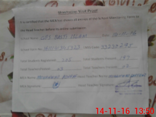 | Certified that this School was Inspected by the Undersigned MEA/DMO Today and the Information Stated Above is as Per Record. | |||||