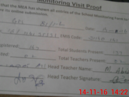 | Attendance Register | Head Teacher | MEA with School | Visit Proof |