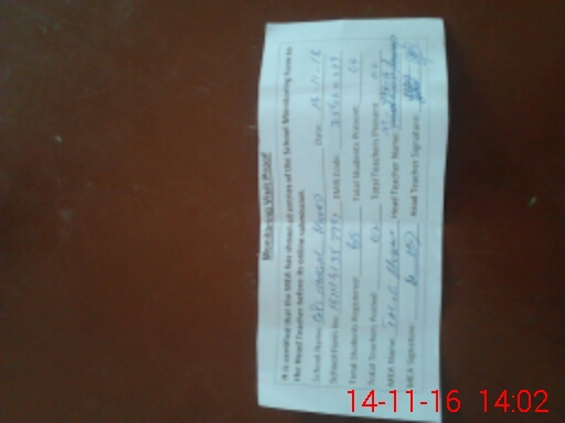 | Attendance Register | Head Teacher | MEA with School | Visit Proof |