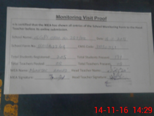 | Attendance Register | Head Teacher | MEA with School | Visit Proof |