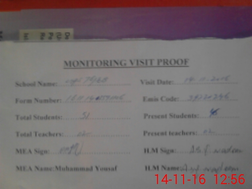 | Certified that this School was Inspected by the Undersigned MEA/DMO Today and the Information Stated Above is as Per Record. | |||||
