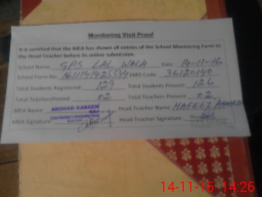| EMIS Code: 36120140 | Name of School: GPS LAL WALA SHUJAHABAD | |||