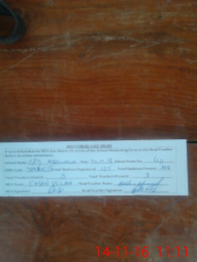 | Attendance Register | Head Teacher | MEA with School | Visit Proof |