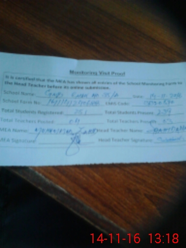 | Attendance Register | Head Teacher | MEA with School | Visit Proof |