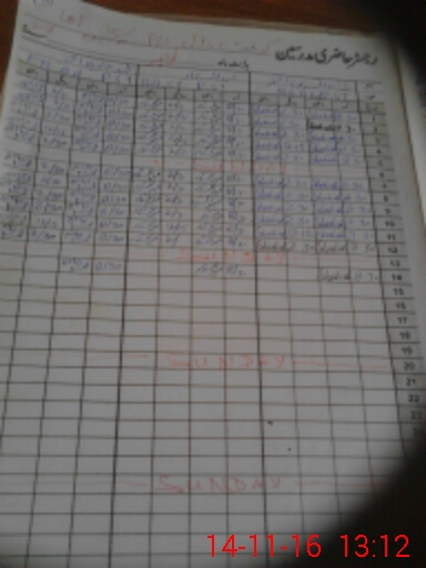 | CNIC | Full Name | Designation | R/C | Absence During Last Calender Month |