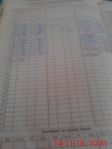 | CNIC | Full Name | Designation | R/C | Absence During Last Calender Month |