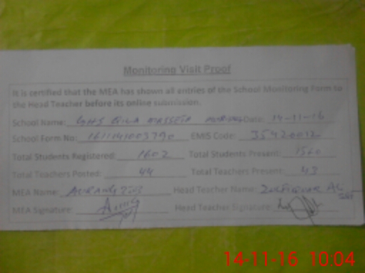 | EMIS Code: 35420012 | Name of School: GHS QILA MASSETAH MURIDKE | |||
