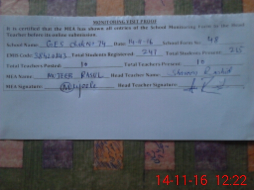 | EMIS Code: 38420143 | Name of School: GHS CHAK NO.74 NB | |||