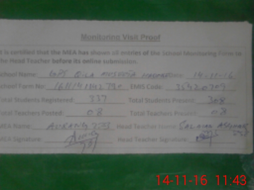 | EMIS Code: 35420709 | Name of School: GPS QILA MUSEETA HADOKAY | |||