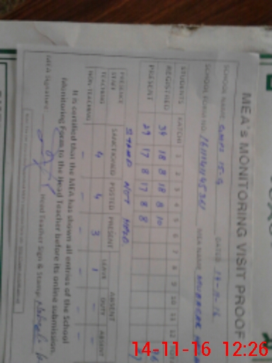 | Attendance Register | Head Teacher | MEA with School | Visit Proof |
