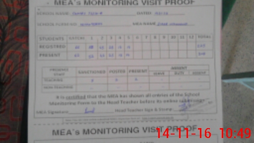 | Certified that this School was Inspected by the Undersigned MEA/DMO Today and the Information Stated Above is as Per Record. | |||||