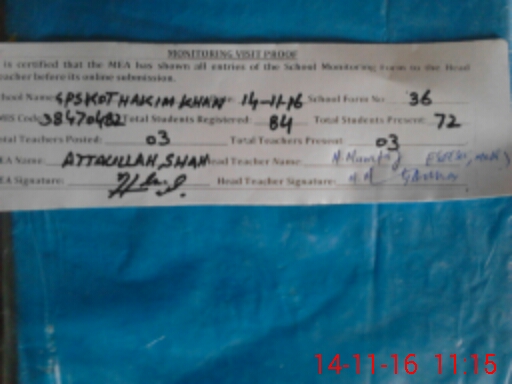 | EMIS Code: 38470482 | Name of School: GPS KOT HAKIM KHAN | |||