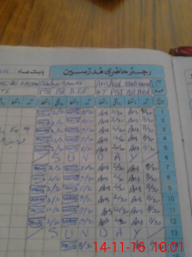 | CNIC | Full Name | Designation | R/C | Absence During Last Calender Month |