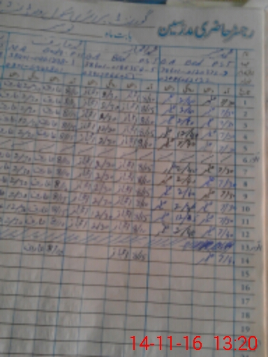 | CNIC | Full Name | Designation | R/C | Absence During Last Calender Month |