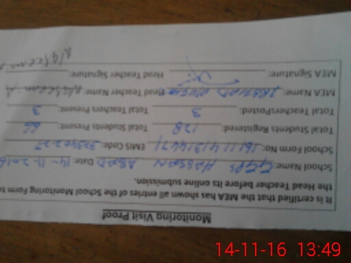 | Certified that this School was Inspected by the Undersigned MEA/DMO Today and the Information Stated Above is as Per Record. | |||||