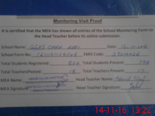 | EMIS Code: 39210026 | Name of School: GGHS CHAK BEDI | |||
