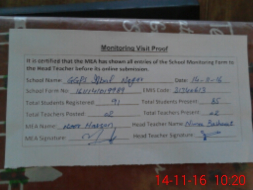 | Certified that this School was Inspected by the Undersigned MEA/DMO Today and the Information Stated Above is as Per Record. | |||||