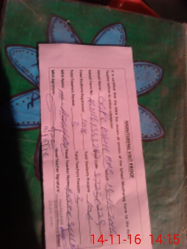 | School Visited by School Health & Nutrition Supervisor (No. of Visits) | 1 | Name1: | Radhid Ussain Shah | Name2: | |