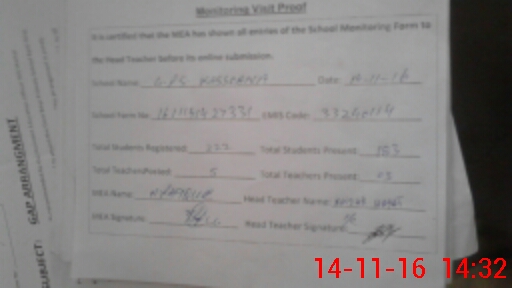 | Attendance Register | Head Teacher | MEA with School | Visit Proof |