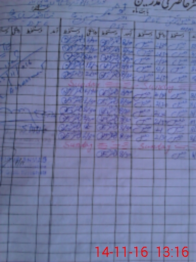 | CNIC | Full Name | Designation | R/C | Absence During Last Calender Month |